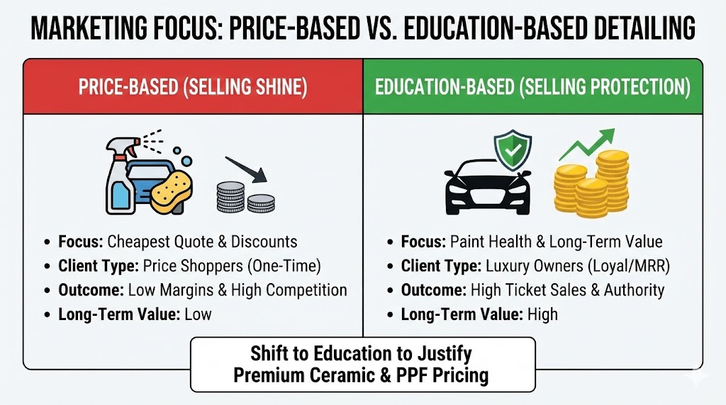 By shifting your car detailing marketing strategies from a service-based approach to an education-based one, you build a fortress around your business. You stop being a “cleaner” and become a “Paint Surgeon.”